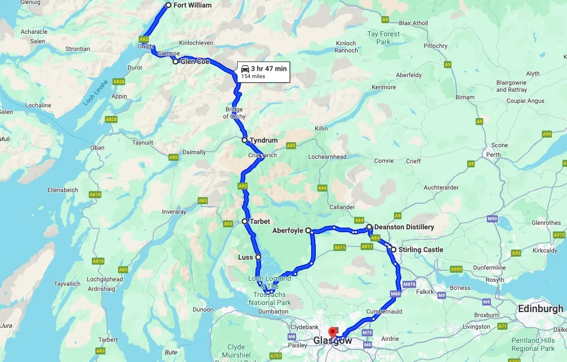 Embark on the final leg of your Scottish journey, departing from the quaint town of Fort William and setting your sights on the vibrant city of Glasgow. As you bid farewell to Fort William, prepare for a day filled with scenic drives, picturesque walks, and visits to historic landmarks.