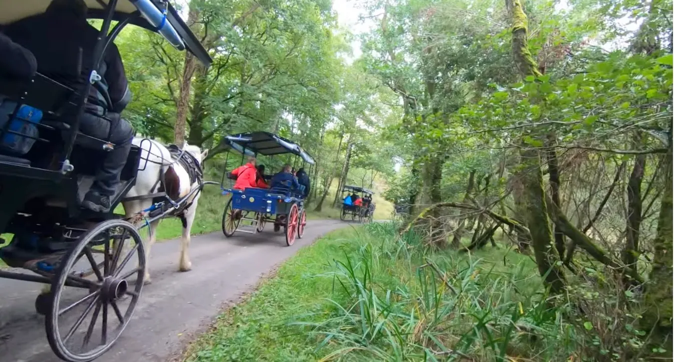No visit to Killarney is complete without a spin in a jaunting car — a two-wheeled, horse-drawn contraption that looks like it was designed by someone who’d never heard of a back problem. You perch sideways, your knees intimately acquainted with strangers’, while a man in a flat cap called a jarvey shouts cheerful abuse at tourists and horses alike.